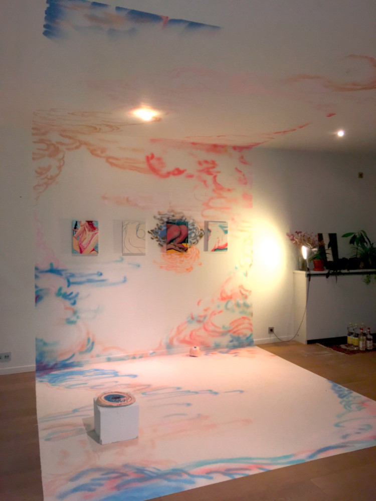 Antoine Carbonne peint un monde de projections douces, phantasmes diffusés et traduits et visions éblouies, spectacle fluide du statut de l’image, de sa pluralité, érotique surement, mais surtout volatile, de celle qui gravite, circule et fuite ; de celle qui s’oublie, numérique et fugitive, mais que la peinture comme la toile retiennent, dominatrices, reprennent, solidifient et hallucinent. Dans les sprays et les fluides picturaux, dans les traits soyeux et les matières tactiles, une série de fragments de corps répondent à la lancinante question du désir, spectral. Trois yeux, quatre femmes. Pulsion scopique sur pulsion tactile. La volonté affamée du voir joute contre tout, contre celle d’une volonté débordante du plaisir de faire. L’espace pictural engagé ici est une fontaine de jouvence, l’inlassable lieu d’une attraction, la source d’abondance coquine tirée d’un seul et même trait : le ruisseau pictural et charnel. La matière plastique, elle, érogène, vaporeuse et languide, s’énonce comme une fragrance et une fresque à la fois, homérique. Image dans et sur l’image, le regard s’abîme, cycliquement.